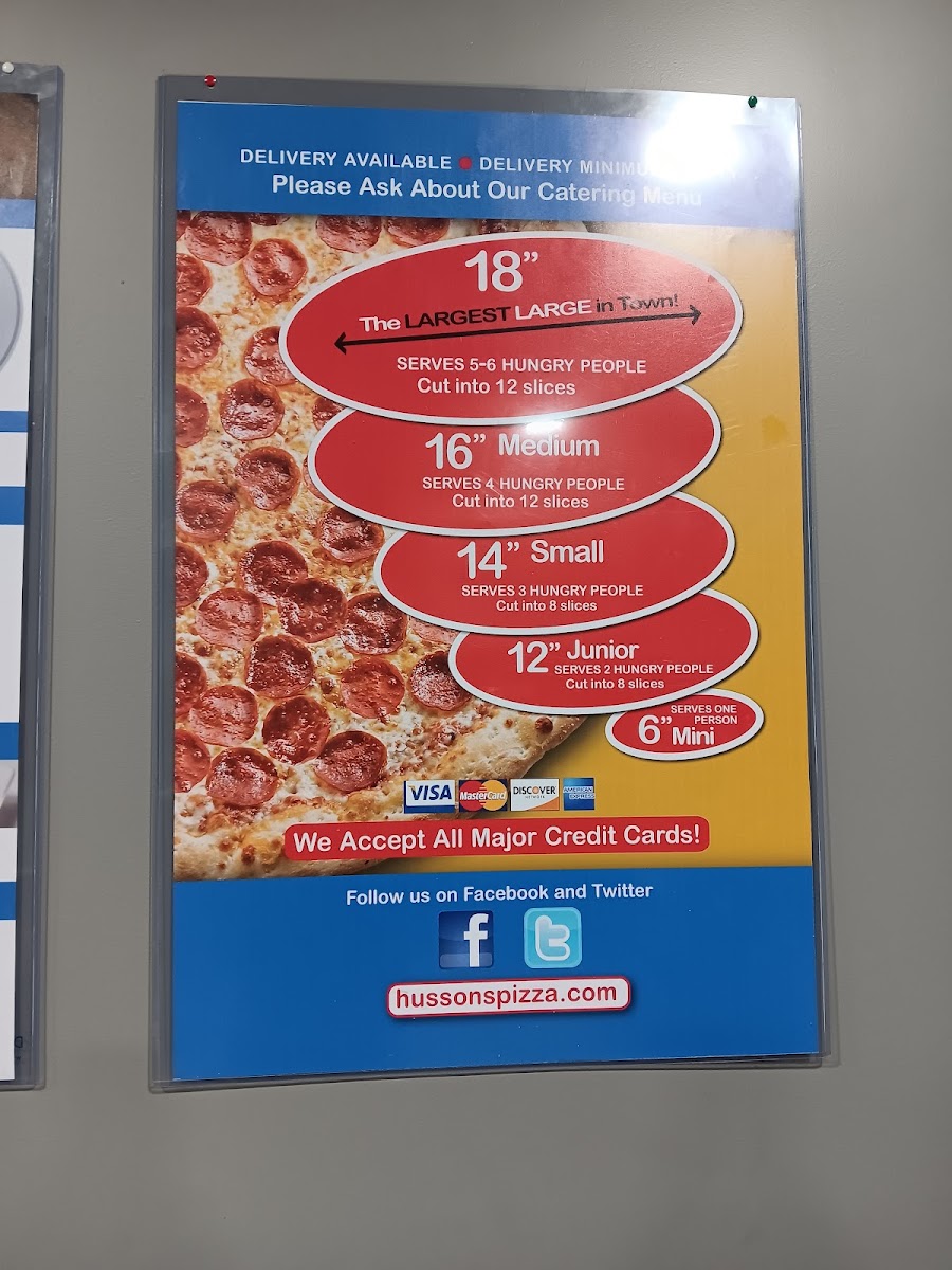 The menu at Husson's Pizza is as varied as it is enticing. For those looking for a lighter option, the Mini 6" Pizzas allow you to customize your meal without the guilt of overindulgence. Whether you choose the hearty Meat Monster featuring layers of pepperoni, sausage, ham, ground beef, and bacon, or the colorful Vegetarian Pizza piled high with mushrooms, green peppers, and olives, you’re sure to experience a satisfaction that’s hard to beat.